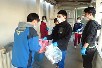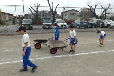 朝はアルミ缶回収、業間は持久走の練習 今日も頑張っています。