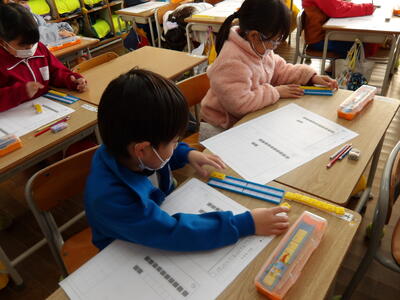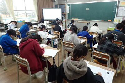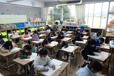 今日と明日は、益子町の学力調査日です。児童たちは、真剣にテスト問題に取り組んでいました。