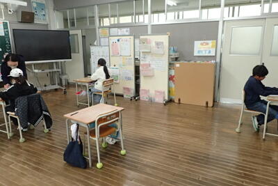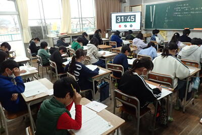 最初の教科は、国語です。4~6年生は、次の時間に理科のテストに取り組みました。明日は、2校時に算数、6年生のみ3校時に社会のテストがあります。2日間、がんばりましょう。