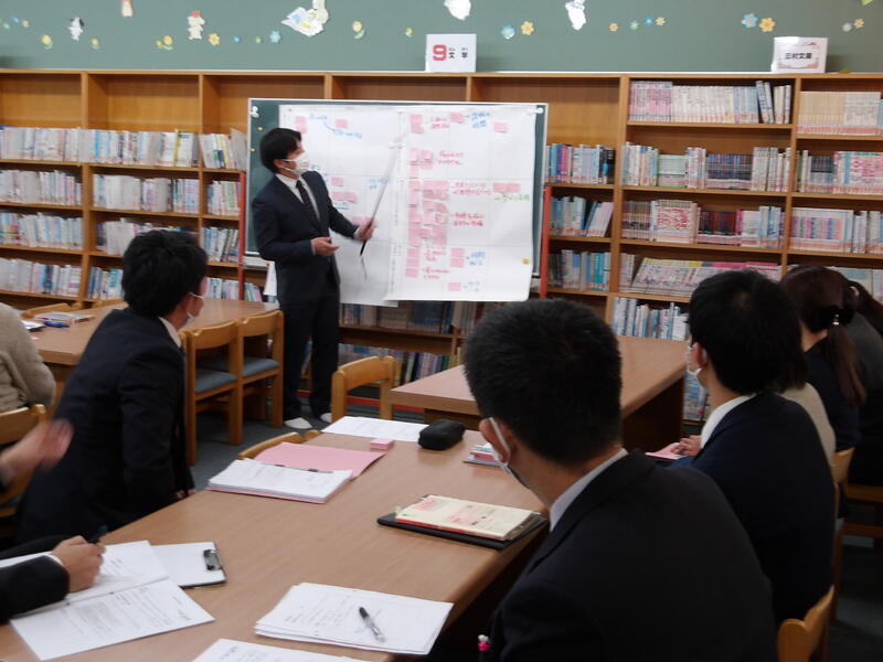 放課後には、授業研究会を行いました。よりよい授業となるように、先生も熱心に話し合いました。