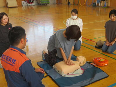 続きまして、体育館へ移動し、普通救命講習会を実施しました。