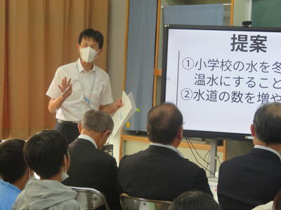 6年生の総合的な学習の時間に副町長様をはじめ、町部局の皆様が七井小学校を訪問し、「みんなで考えよう 益子町の未来」の現時点での子供たちの提案や発表をきいてくださいました。そして、感想をいただいたり、子供たちの質問に答えていただいたりしました。大変有意義な時間を過ごすことができました。ありがとうございました。