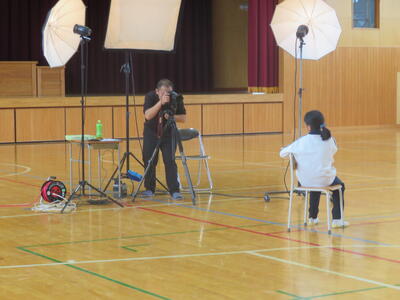 6年生が卒業アルバムの写真撮影を行いました。集合写真、個人写真・・・と撮影しました。