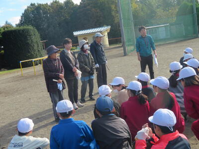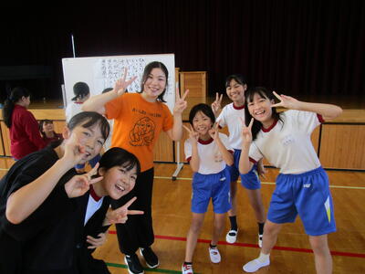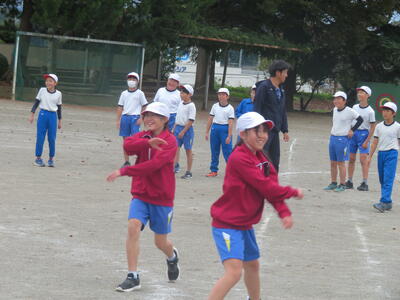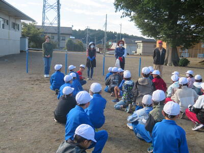 授業の様子を見たり、給食の手伝いや落ち葉掃きなどをしたりしていました。本日の昼休みは、小学生と一緒に遊んでくれました。小学生もとってもうれしそうでした。