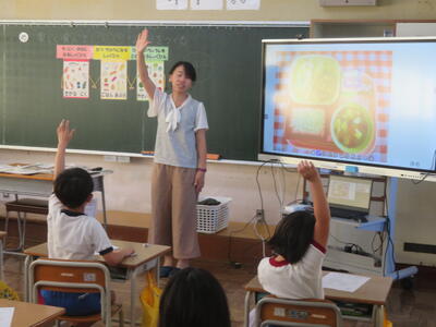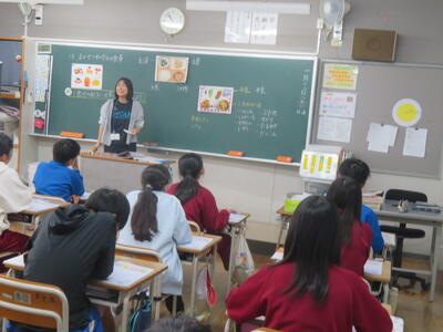 栄養教諭の望月先生と2年生の食育栄養指導が行われました。