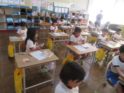 最初の教科は、国語です。4~6年生は、次の時間に理科のテストに取り組みました。明日は、2校時に算数、6年生のみ3校時に社会のテストがあります。2日間、がんばりましょう。