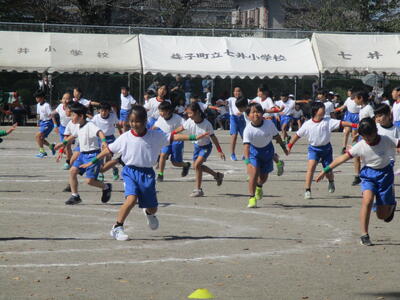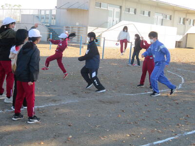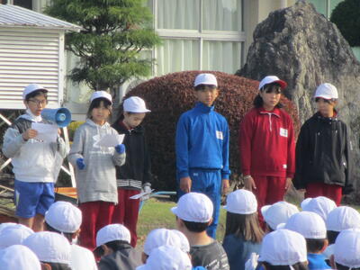 1~5年生は、町学力調査が終了し、業間は持久走大会に向けての練習です。今日も張り切って走ります。