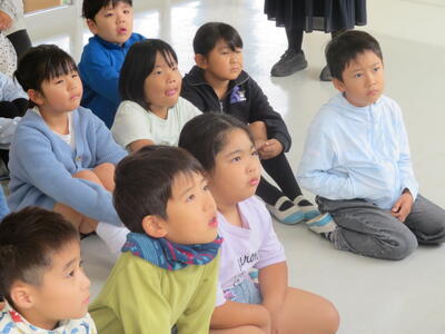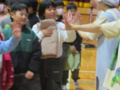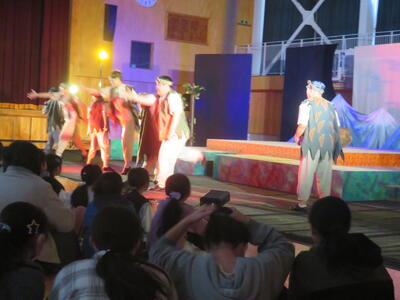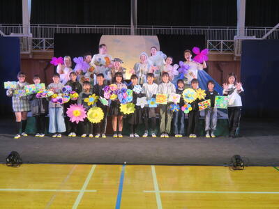 いつもの体育館がミュジージカルの舞台になり、全校生、希望する保護者の皆様とミュージカル「あらしのよるに」を鑑賞しました。6年生の児童も数人、参加させていただき楽しむことができました。