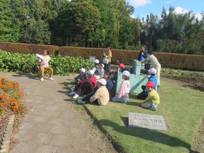第2回青空読書会が行われました。今回も大豆畑の前で、食育菜園ボランティアの方の読み聞かせをしてくださいました。からっとした気持ちのいいお天気でした。