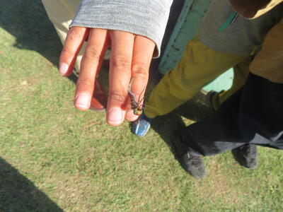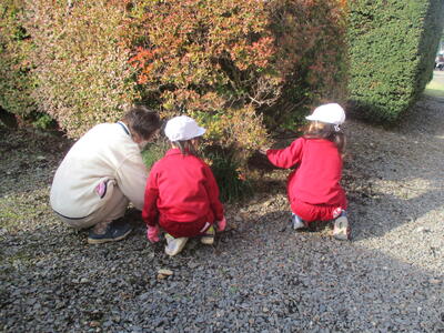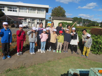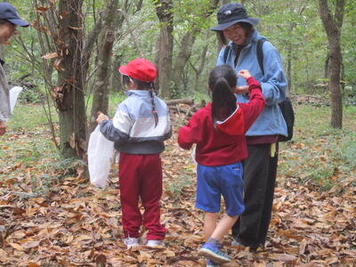 1年生が生活科校外学習で根本山へ行き、秋の自然を観察したり、木の実や落ち葉を拾ったりしてきました。