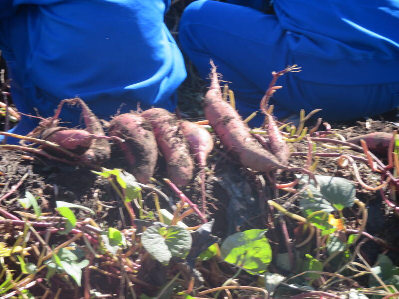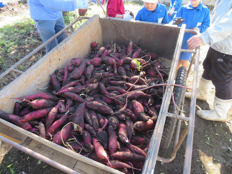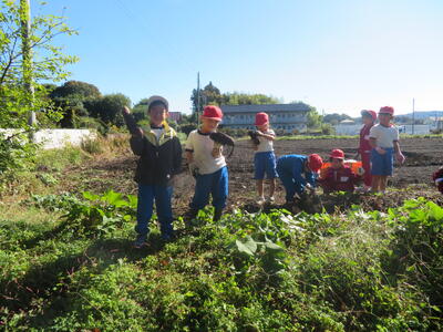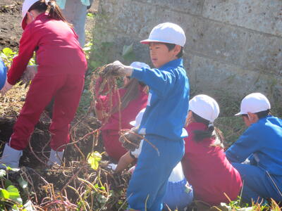 本日は、1,2年生が前後援会長様の畑でいも掘り体験をさせていただきました。