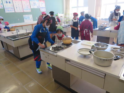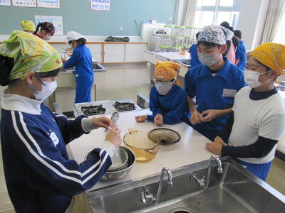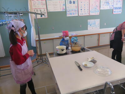 2組に続いて、1組もご飯とみそ汁の調理実習を行いました。