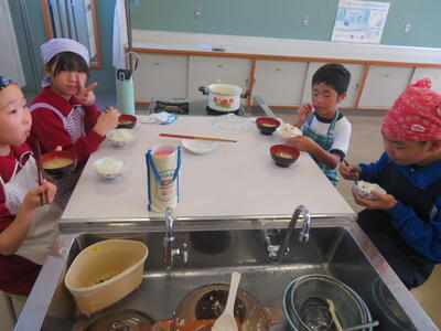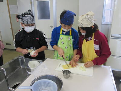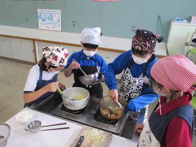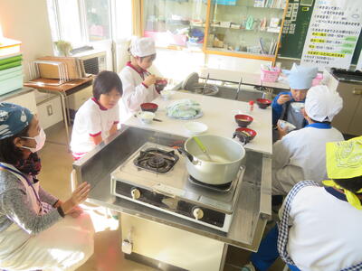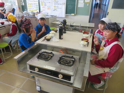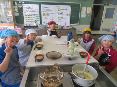 5年2組でごはんとみそ汁の家庭科調理実習を行いました。