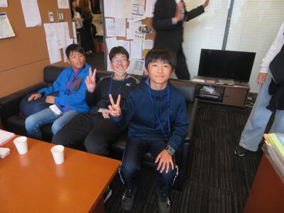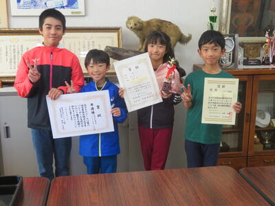 さっそく、50周完走した子供たちが、校長室へオリジナルステッカーを受け取りにきてくれました。