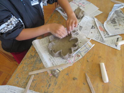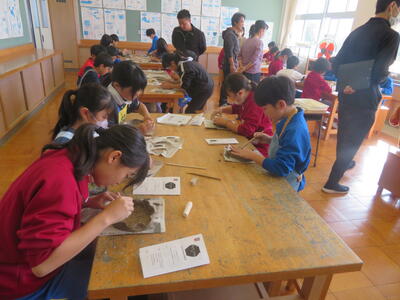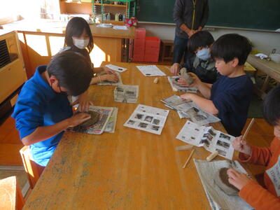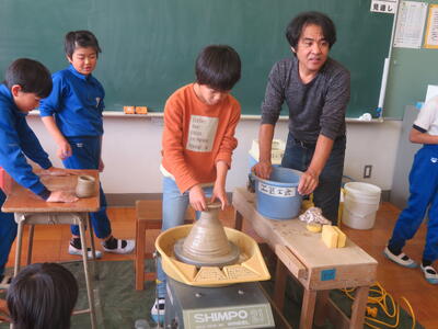 4年生が、益子町伝統工芸士の皆さんを迎えて制作体験をしました。