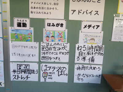 9月に実施した生活チェックに関する課題について、委員会の児童からアドバイスをする内容でした。
