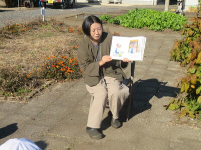 昼休みに食育菜園ボランティアの皆様による第3回青空読書会が行われました。