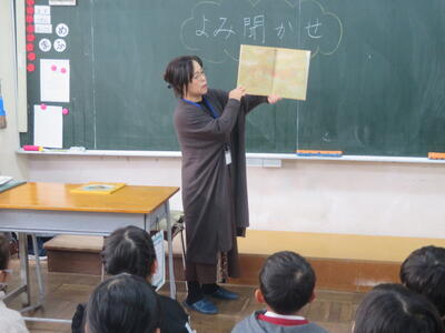 本日は、1年生にかたつむりの会の方の読み聞かせがありました。
