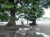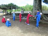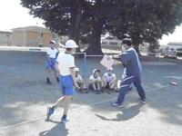 5・6年生は合同体育で、新体力テスト種目と陸上の練習をしていました。木陰で休息も