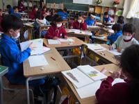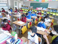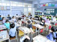1年生は外国語活動と算数、2年生は国語と生活、3年生は理科と算数、4年生は国語と算数の授業の様子です。