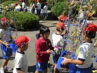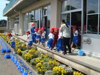 1年生が「栽培活動」で、枯れたマリーゴールドを抜いて運びました。お手伝いが得意な1年生のおかげで、あっという間に花壇がスッキリしました。