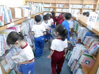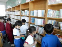 2-1学級活動「図書室の本のならべ方をしろう」バーコードをピッと通すやり方を司書の先生に教えていただきました。「かんたん」「はや~い」と、図書室に足を運ぶ楽しみが増えた様子です。