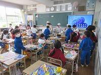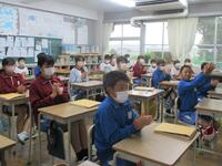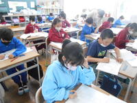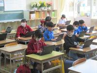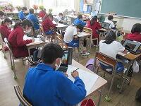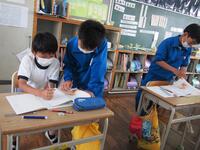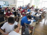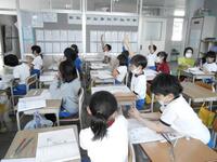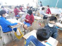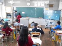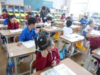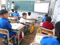 午前中の授業の様子です。1年生は国語と道徳、2年生は算数、3年生は道徳と社会、4年生は社会と理科、5年生は算数と外国語、6年生は算数と国語?の授業スナップです。