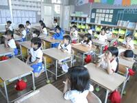 1組の教室から歌声が聞こえてきました。音楽の時間です。「いぬのおまわりさん」や「めだかのがっこう」など、いろいろな歌を楽しそうに歌っていました。