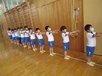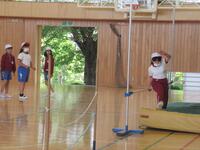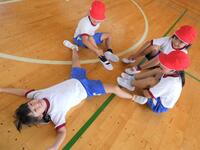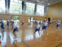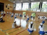 5時間目の体育は1・2組合同で行い、体育館で「多様な動きをつくる運動遊び」をしました。スキップや横ステップなど元気いっぱい運動しました。