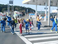 ねらい…①一列歩行、横一列横断を確実に行う。②班長、副班長がリードし、全員が確実に安全確認を行う。