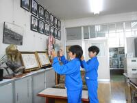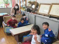 校長室には「さいしょのこうちょうせんせいはいちばんみぎうえのしゃしんです。メダルやトロフィーやしょうじょうがいっぱいあって、きんこがあって、れきしがいっぱいあります。きれいなとけいがあります。せんせいはやさしくていつもわらっています。」と、Mさんが上手にまとめてくれましたね。ありがとう(*^_^*)