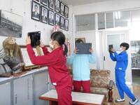 体育館では6年生が卒業アルバムの個人写真を撮影中でした。照れながらも笑顔でポーズを決めていました。