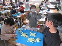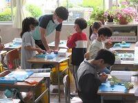 1年1組の図工は「カラフルいろみず」、2組と2年生の図工は運動会スローガン共同製作の様子です。3年生は理科で空気鉄砲の実験をしていました。