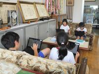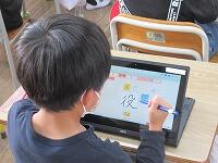 タブレットPCで朗読の様子を自撮りし、自己評価につなげていました。