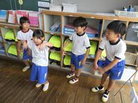 1-1音楽「わらべうたであそぼう」お隣さんと全力で「おちゃらかホイ!」を楽しんでいましたね。
