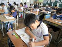 1年生は算数「かたちあそび」と国語「かんじれんしゅう」、2年生は図工「楽しかったよドキドキしたよ」、3・4年生と5・6年生は運動会練習の様子です。本番まで2週間を切りましたね。