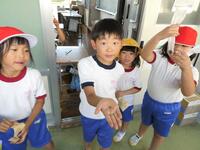 今日も朝から水やりを…と、「あっ!」発芽し始めた様子に気付き、大喜びする子もいました。
