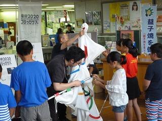6年生はミシンで縫った雑巾をお返しにプレゼントしました。