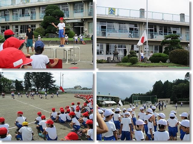 今日はラジオ体操、閉会式の入場、応援を中心に練習しました。