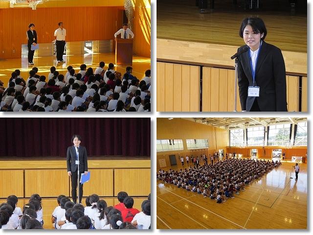 月に1度ほど来てくださる先生の紹介や、表彰伝達、校長先生のお話がありました。