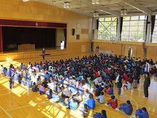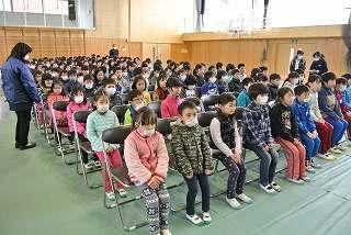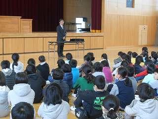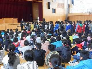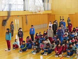 終業式が終わった後に児童指導主任から冬休みの生活について話がありました。冬休みの「合い言葉:はひふへほ」のお話でした。冬休みの「はひふへほ」をしっかり守りましょう。