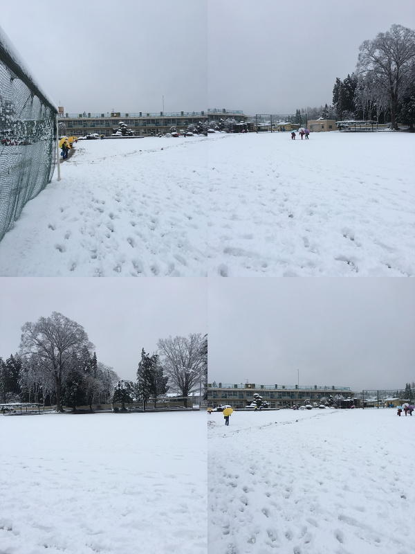 1月18日(月)の未明からの雪で校庭は真白になりました。