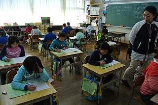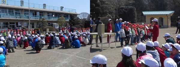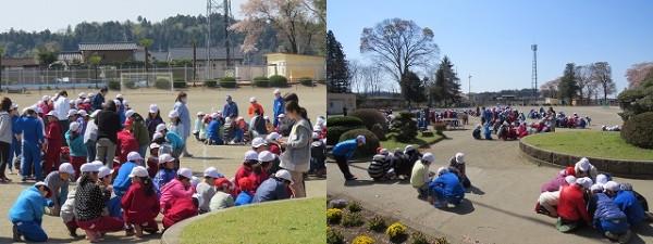 2時間目の休み時間に避難訓練がありました。今回の訓練は、休み時間に自主的に避難する訓練でした。放送を聞いて自分たちで考えてすばやく避難することができました。