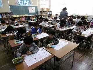 1年生と6年生がペアを組み、やり方を教えてあげながら実施しました。