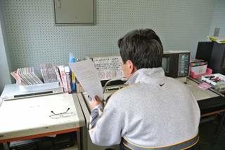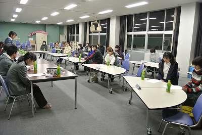 益子町民会館で開かれている理科展の様子です。出品した全部の作品を丁寧に審査しました。