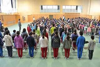 校長先生のお話の前に熊本地震への黙祷を行いました。