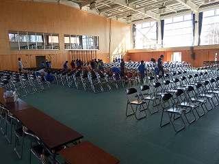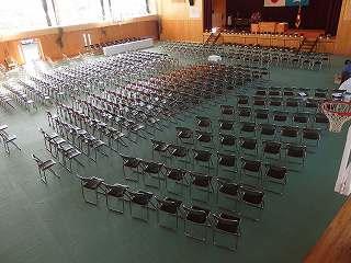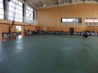 昨日の今日だったので、プールの水が貯らず、体育館での開催となりました。