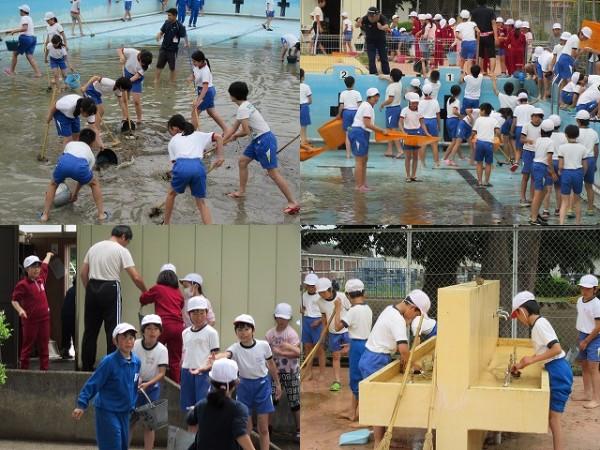 プール清掃とプール開きと登校班会議