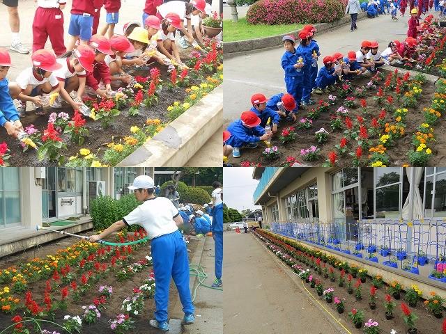 全学年とも協力しながら苗を植えたり水をあげたりしました。