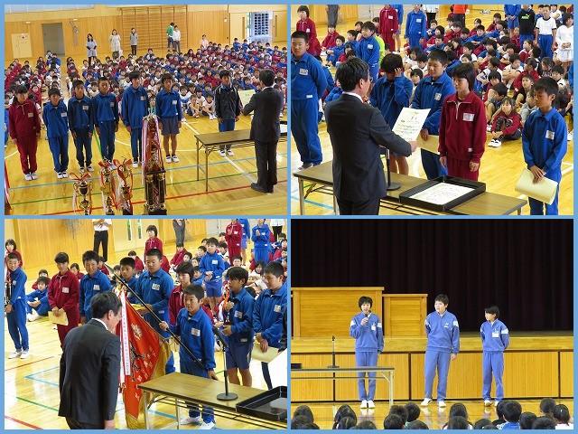 町陸上や郡陸上、野球部、サッカー部、バレー部、良い歯のポスター、とちぎKIDおもてなしイラストなどの表彰がありました。